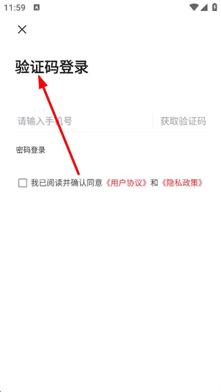 3、選擇驗證碼登錄方式,需先輸入手機號點擊獲取驗證碼,勾選同意用戶協議和隱私政策,完成信息填寫后即可進行登錄。