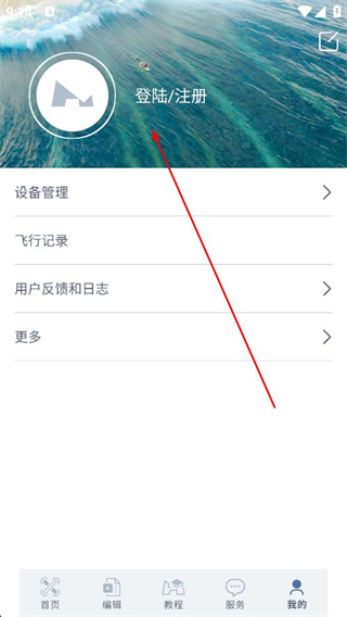 1、進入哈博森無人機APP我的頁面,點擊登陸注冊按鈕,進入登錄或注冊頁面。