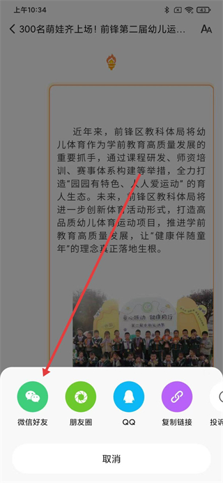 4、在資訊詳情頁點擊分享按鈕選擇微信好友朋友圈等渠道,也可選擇復制鏈接。