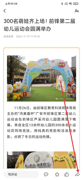 3、點擊選定的資訊進入詳情頁閱讀資訊中的活動介紹,了解活動的具體信息,點擊右下角的分享按鈕。
