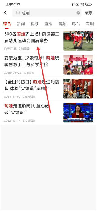 2、在主頁面搜索框輸入關鍵詞點擊搜索按鈕,瀏覽綜合分類下的資訊列表,查看各資訊的標題與閱讀量,挑選感興趣的資訊內容準備查看詳情。