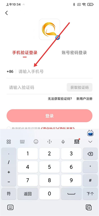 1、打開前鋒發布app進入登錄界面,選擇手機驗證登錄,輸入手機號碼,點擊獲取驗證碼,填寫對應驗證碼,勾選相關協議后點擊登錄。