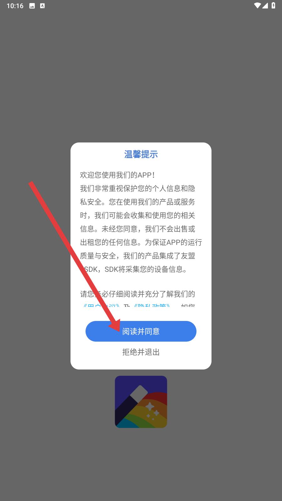 1、進入軟件之后,會跳出服務協議,需要認真閱讀軟件給出的建議后點擊同意并繼續下一步。