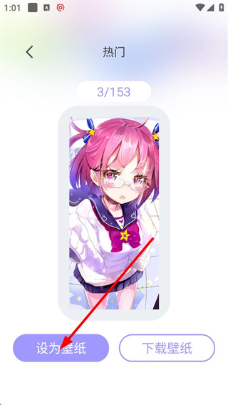 2、選中某款壁紙后進入詳情頁,頁面顯示該壁紙熱門分類中的序號,同時提供設為壁紙和下載壁紙按鈕,便于快速使用該壁紙資源。