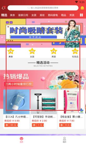 3、精選區有時尚套裝推薦及美食女裝等分類入口和熱銷爆品展示。