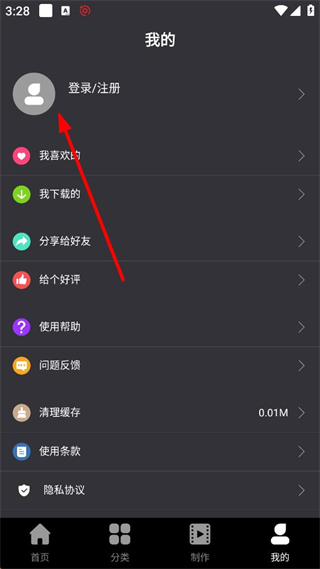 2、我的頁面設有登錄、注冊、我喜歡的等功能選項,選擇登錄、注冊選項,即可進入對應的登錄操作界面。