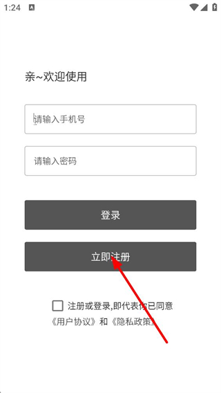 3、進入登錄頁面后,可輸入手機號與密碼完成登錄,也能點擊立即注冊按鈕,進入賬號注冊頁面。
