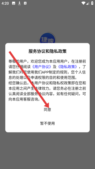 1、服務協議和隱私政策確認框,文案詳細說明用戶協議、隱私政策的效力與內容要求,同意按鈕是使用前提,暫不使用提供退出選項。