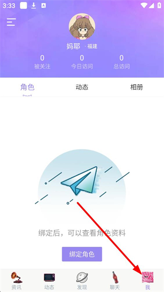 2、個人中心可看到被關注、今日訪問等數據,點擊綁定角色進入游戲信息授權界面,準備授權游戲賬號信息。