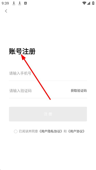 4、若未注冊,登錄界面點擊新用戶注冊進入賬號注冊界面,輸入手機號、驗證碼后勾選同意協議點擊注冊,完成注冊后即可登錄使用APP功能。