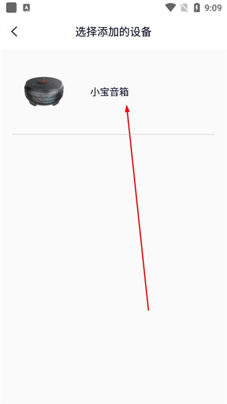 3、進入選擇添加的設備頁面,選定小寶音箱這一設備,選定設備后進入為音箱配置網絡頁面。
