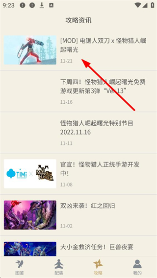 提供了圖鑒查詢、配裝服務以及攻略資訊等功能,是您的隨身崛起小助手,可隨時看攻略,看百科。