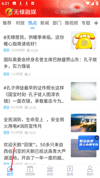 1、首頁板塊設多欄目,熱點欄目展示供暖指南、孔子故鄉盛贊、消防宣傳月等新聞,涵蓋民生文化安全領域。