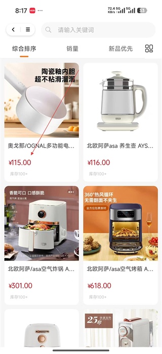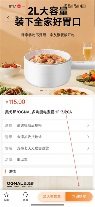 3、登錄后進入分類板塊瀏覽展示的商品列表,選擇奧戈那多功能電煮鍋這一商品,點擊進入對應的商品詳情頁面。