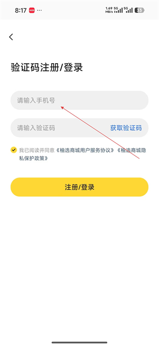 2、在注冊登錄頁面,勾選同意用戶協議和隱私政策,填寫手機號碼并獲取驗證碼,輸入后點擊注冊登錄按鈕完成賬號登錄。