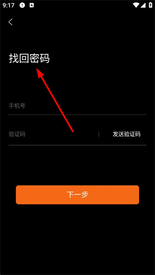 4、找回密碼頁面,輸入手機號、獲取并輸入驗證碼,點擊下一步即可進行密碼找回操作,以便重新設置密碼登錄球記。