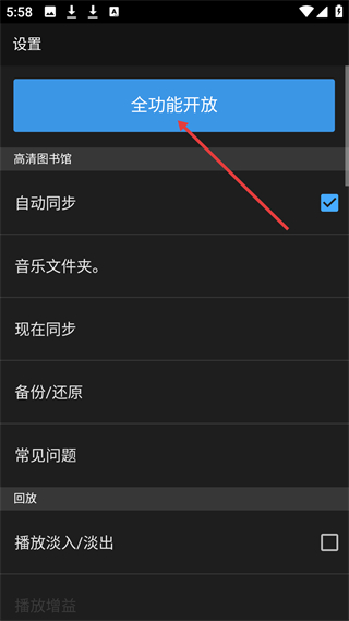 2、設置頁,有全功能開放、自動同步、備份還原等選項,用戶可根據需求調整應用功能。
