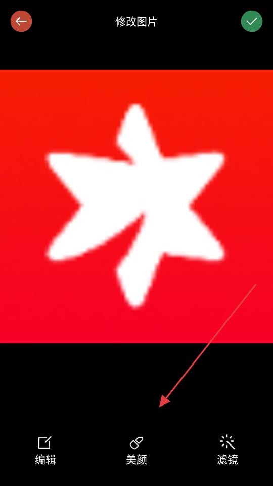 2、若需修圖,從相冊選圖片進入修改界面,可點擊美顏、濾鏡等功能,對圖片進行美化調整,完成后保存或分享。