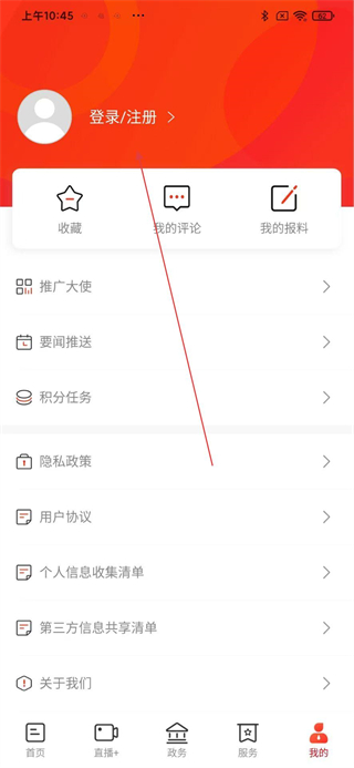 1、進入我的頁面,看到登錄注冊入口,以及收藏我的評論等功能,還能選擇推廣大使要聞推送等選項,點擊去登錄解鎖更多功能。