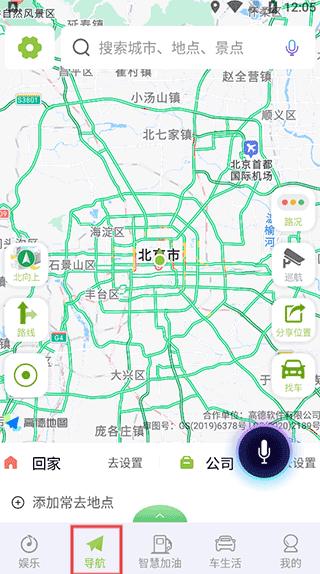 2、返回APP主界面,點擊底部導航按鈕,進入導航頁面,借助搜索欄或快捷功能,規劃行車路線,啟動導航服務。