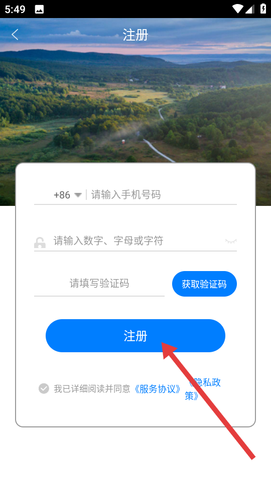 3、點擊立即注冊進入注冊界面,輸入手機號碼設置密碼,點擊獲取驗證碼并輸入收到的驗證碼,勾選同意相關協議后,點擊注冊完成賬號注冊后即可登錄APP使用。