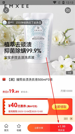 4、在商品詳情頁點擊領取對應的優惠券,確認券后價格,再選擇購買選項,即可推進該商品的下單流程,享受優惠后的價格。