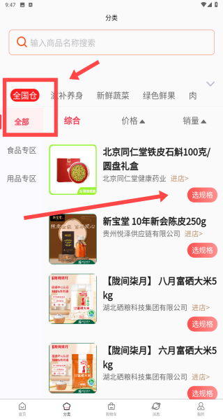 3、在分類頁面可見全國倉庫,應有盡有的產品共顧客挑選。