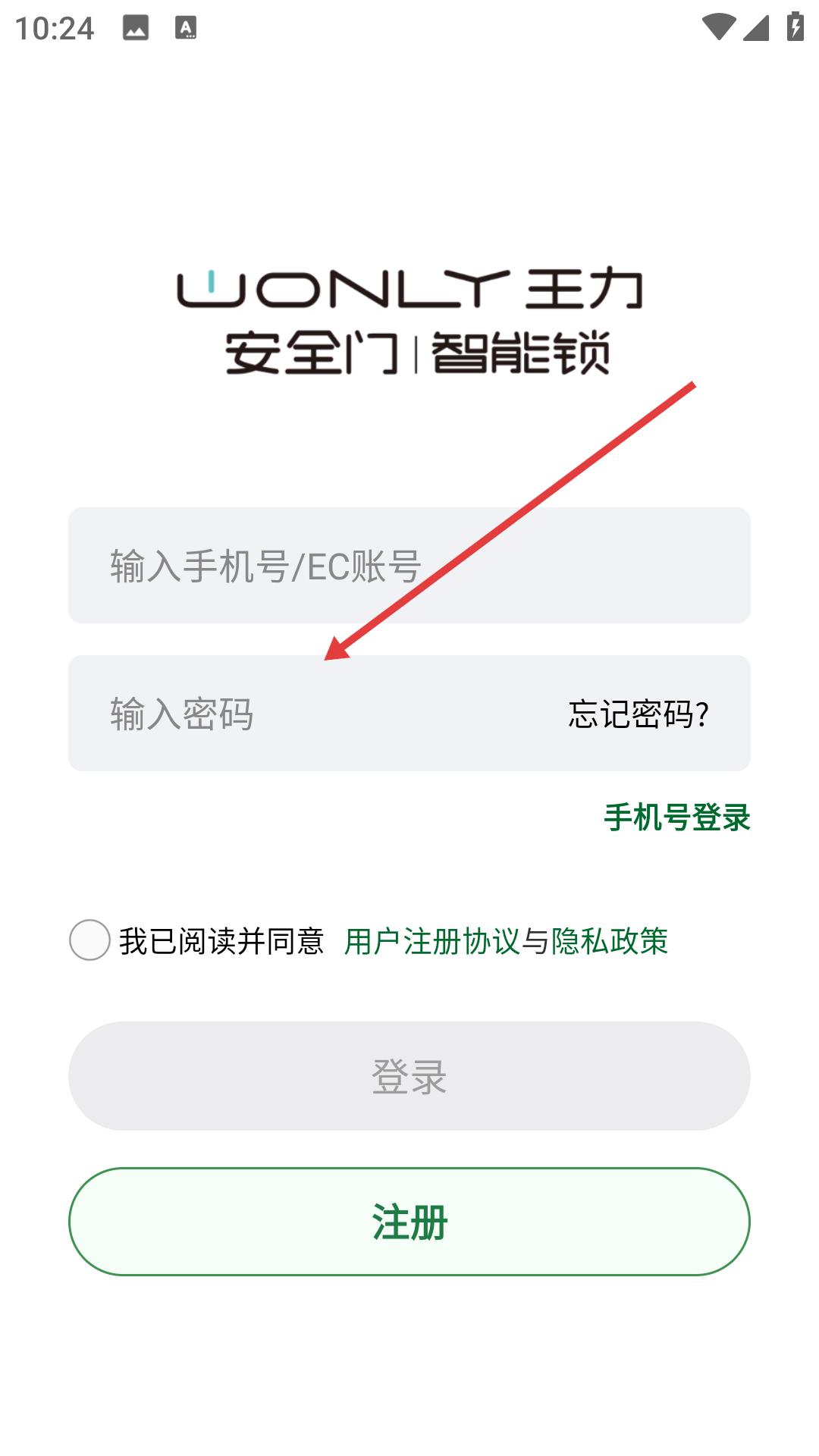 3、若已有賬號進入登錄頁面,輸入手機號碼EC賬號及密碼,勾選我已閱讀并同意用戶注冊協議與隱私政策,點擊登錄。