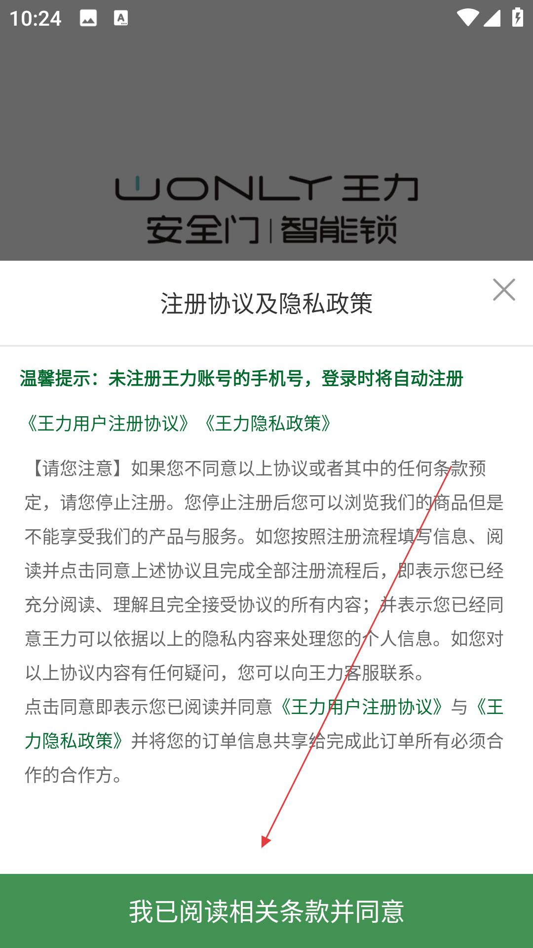 1、進入軟件注冊協議及隱私政策頁面,閱讀王力用戶注冊協議與隱私政策,點擊我已閱讀相關條款并同意,確認遵守協議內容。