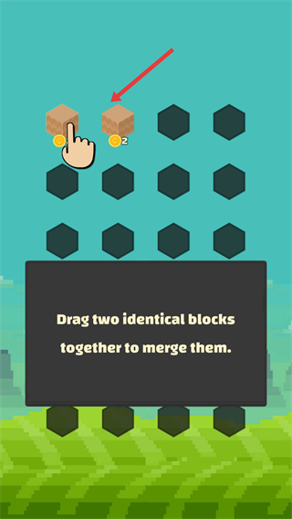 1、按照界面提示,拖動兩個相同的方塊到一起,就能將它們合并,合并過程中還能獲得金幣。
