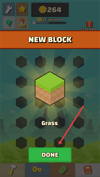 4、之后又會出現新的方塊,比如標注Grass的方塊,同樣點擊DONE,將其加入游戲區域,繼續合并操作。