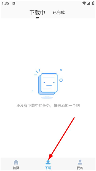 4、點擊底部下載按鈕,進入下載頁面,當前無下載任務,可在應用內添加資源下載任務,在該頁面查看下載進度。