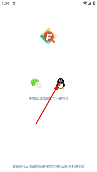 3、進入登錄頁面后,支持QQ、微信一鍵登錄,登錄后收藏數據可同步云端,便于跨設備使用。