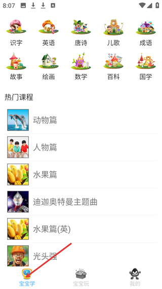 1、寶寶學涵蓋識字、英語等多學科學習板塊及熱門課程,界面充滿童趣,助力兒童系統且趣味地學習各類知識。