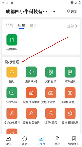 2、在應用頁面選擇投標管理板塊,點擊更新補遺,進入更新補遺頁面。