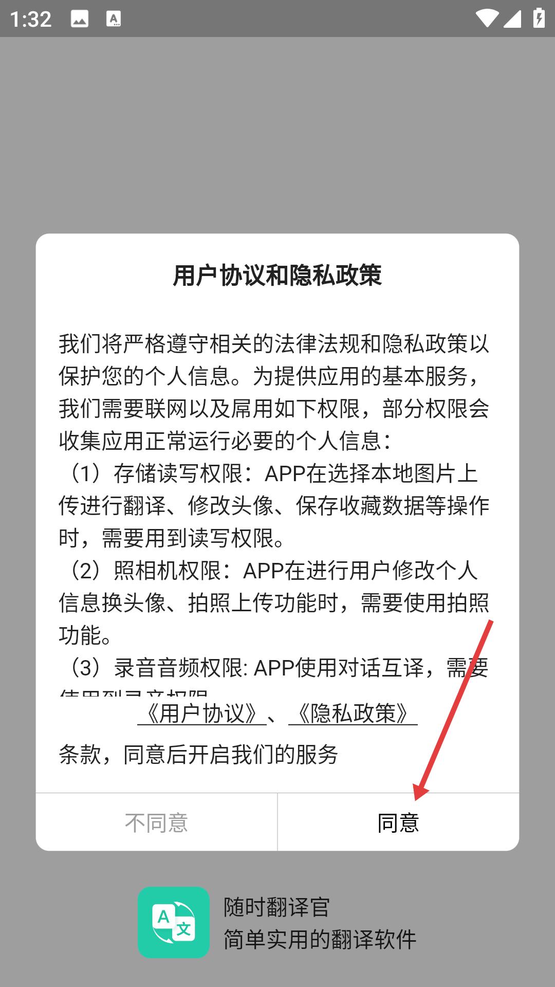 2、在協議彈窗點同意,跳轉翻譯界面,用文本翻譯,進對話模式,查更多功能,管個人中心,操作便捷。