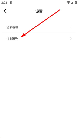 3、進入設置界面,包含消息通知和注銷賬號選項,選擇注銷賬號選項,就能進入賬戶注銷對應的操作頁面。