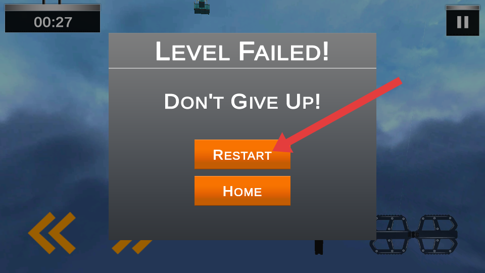 4、若出現通關失敗提示,說明關卡失敗,此時可點擊Restart重新挑戰,或點擊home返回主界面。