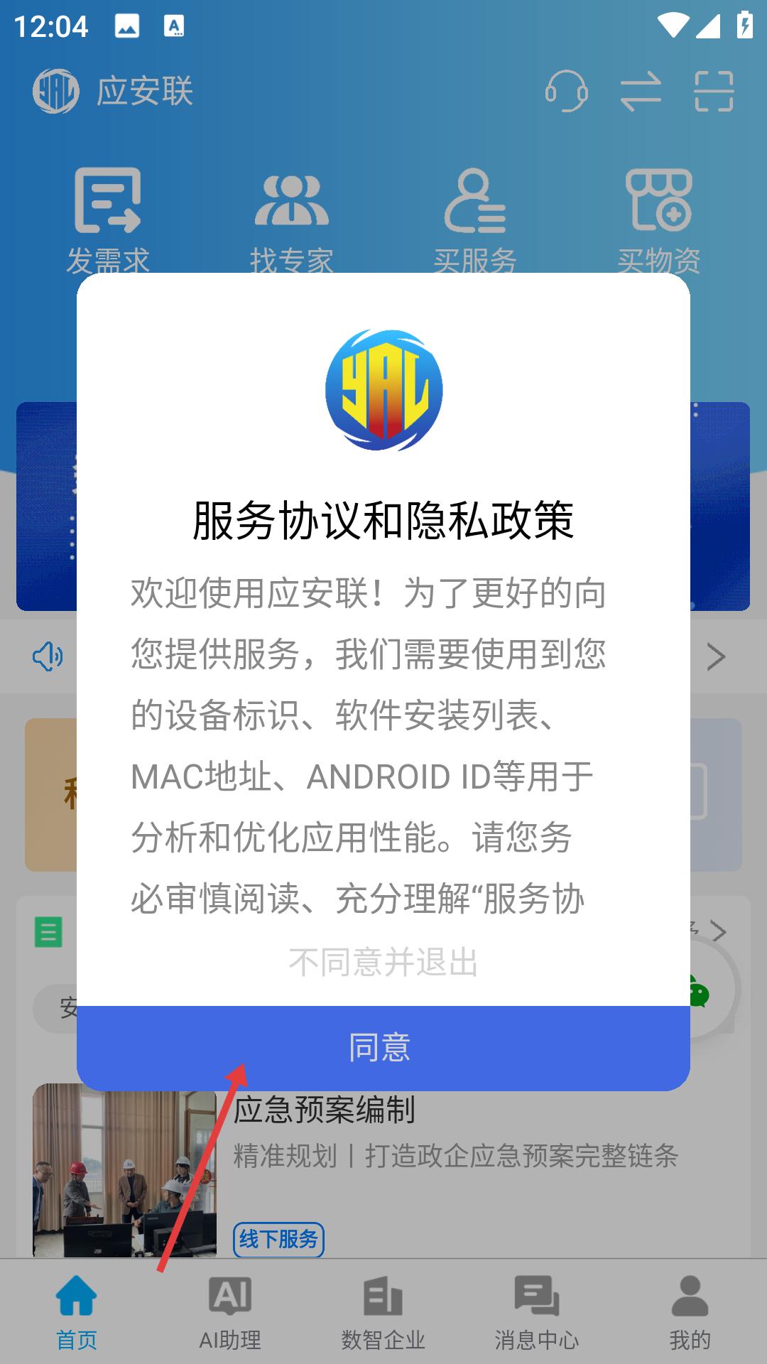 1、下載安裝完成后進入,需在用戶協議和隱私政策界面點擊同意,接受相關條款后才能進入應用。