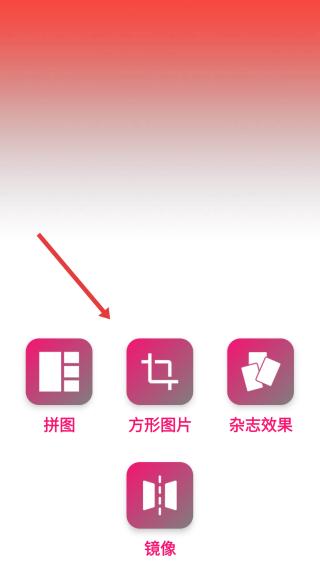 2、點擊應用功能選擇頁面,提供拼圖、方形圖片、雜志效果、鏡像等多種圖片處理功能,滿足不同需求。