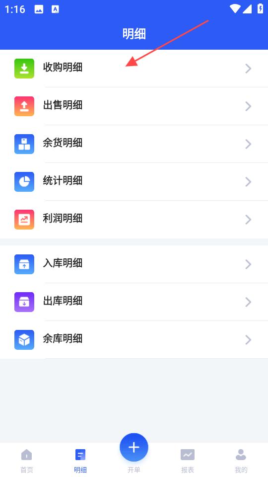 2、明細界面,有收購明細、出售明細等多種明細分類,用戶可點擊查看相應的明細數據,方便用戶了解農產品的收購、出售等情況。