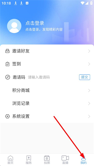 2、我的界面,能看到點擊登錄入口,還有邀請好友、簽到等功能選項,點擊點擊登錄進入用戶登錄界面。