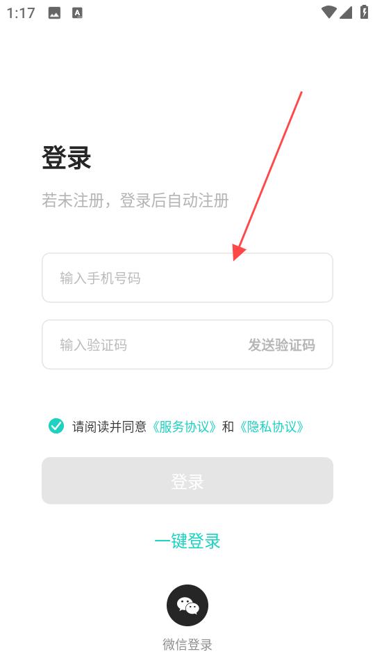 1、登錄界面用戶輸入手機號,獲取并填寫驗證碼,勾選同意協議后可登錄,未注冊登錄后自動注冊,也可微信一鍵登錄。