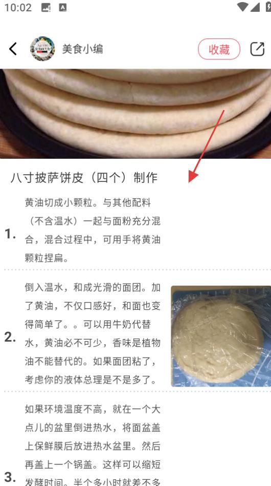 3、美食小編分享的八寸披薩餅皮制作帖,分三步講解,有黃油處理、和面、發酵等步驟,附制作過程圖。