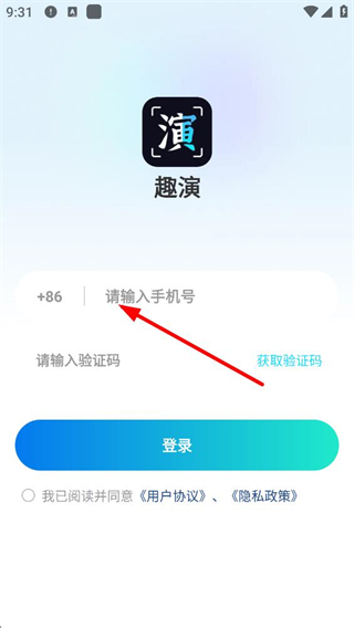 1、進入登錄界面,輸入手機號,點擊獲取驗證碼,輸入驗證碼后勾選用戶協議和隱私政策,點擊登錄即可進入App。