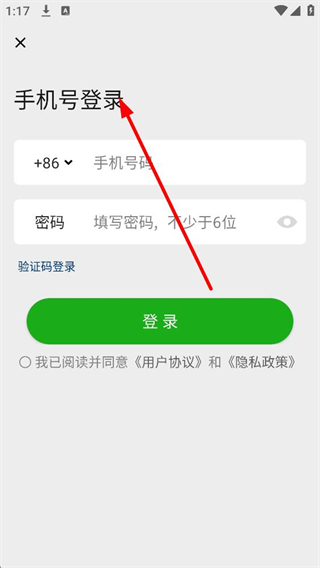 2、選擇手機號登錄,需輸入手機號碼和密碼,勾選同意用戶協議和隱私政策后點擊登錄,也可選擇驗證碼登錄方式。
