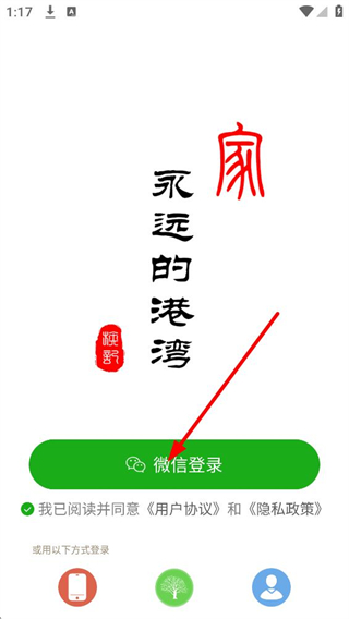 1、進入應用登錄頁面,可選擇微信登錄,需勾選已閱讀并同意用戶協議和隱私政策,也可選擇其他登錄方式,如手機、樹木圖標、人物圖標登錄方式。