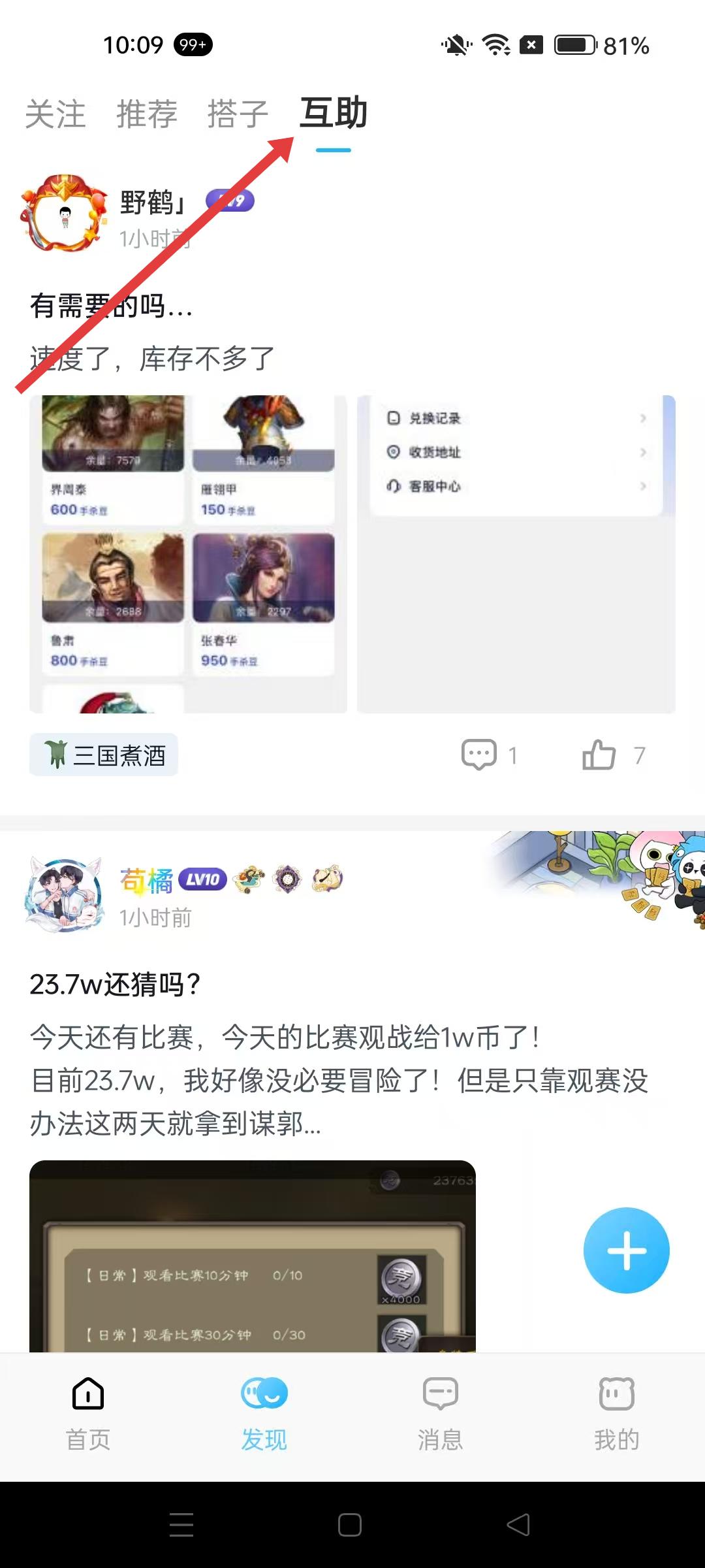 4、進入發現頁的互助板塊,可瀏覽玩家發布的互助帖子,獲取游戲道具、賽事等相關幫助信息。