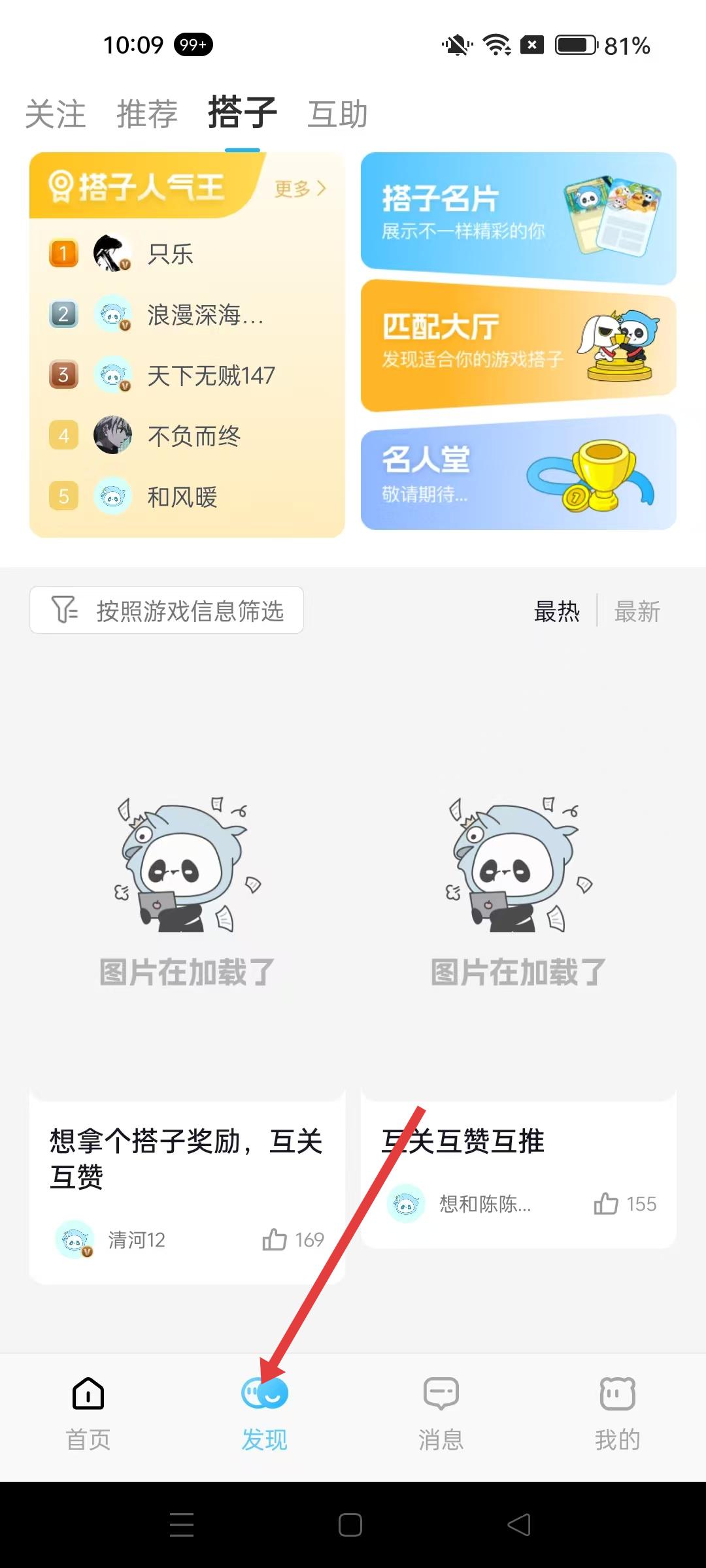 3、發現頁的搭子板塊,可查看搭子人氣王榜單,參與互關互贊活動,尋找游戲搭子。