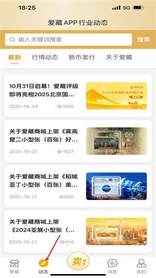3、動態板塊有搜索欄,設最新等分類,展示愛藏評級亮相錢幣博覽會等動態,方便了解收藏行業信息。